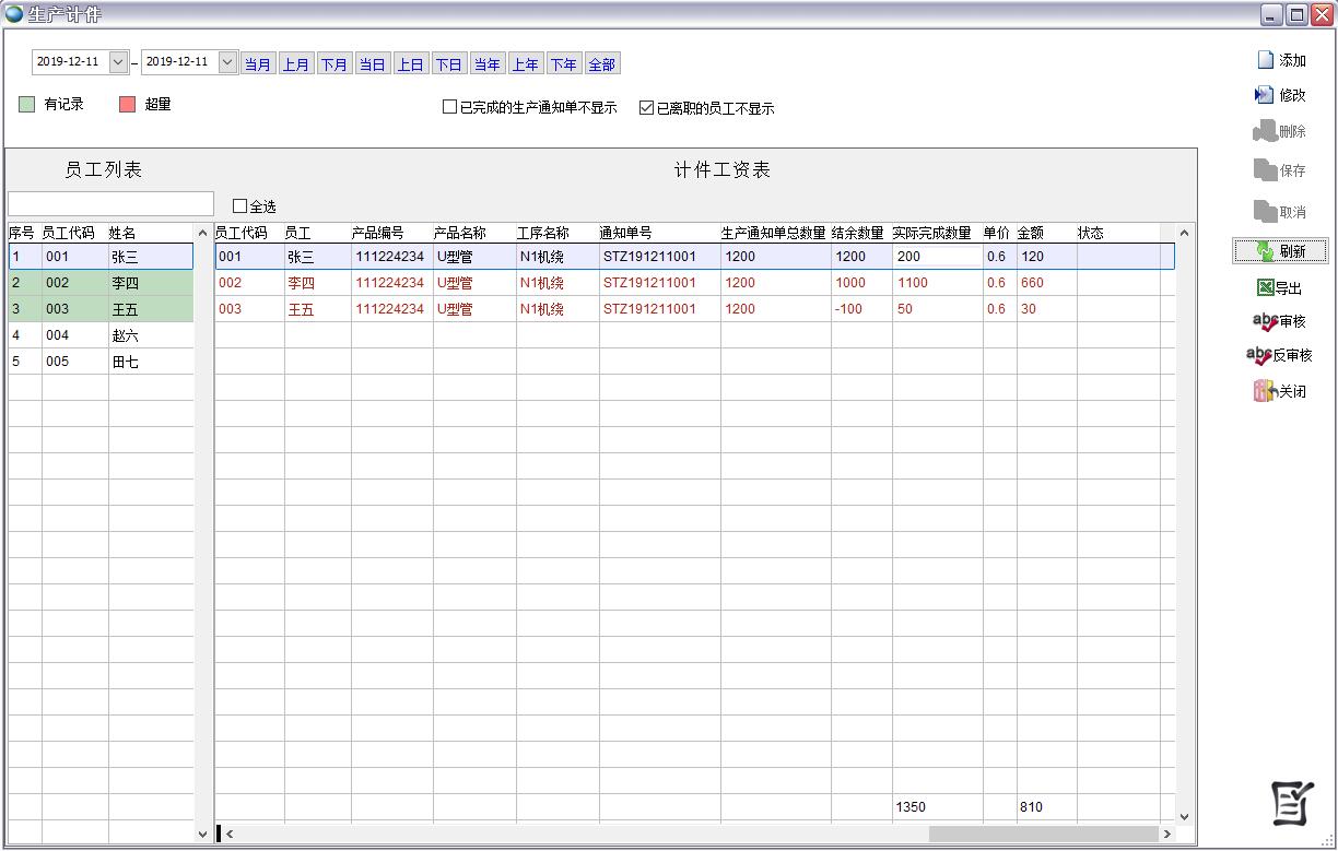 管理要求:所有工序通过扫码完成,入库也需要扫码,对工序进行计件统计作为计件工资计算的依据