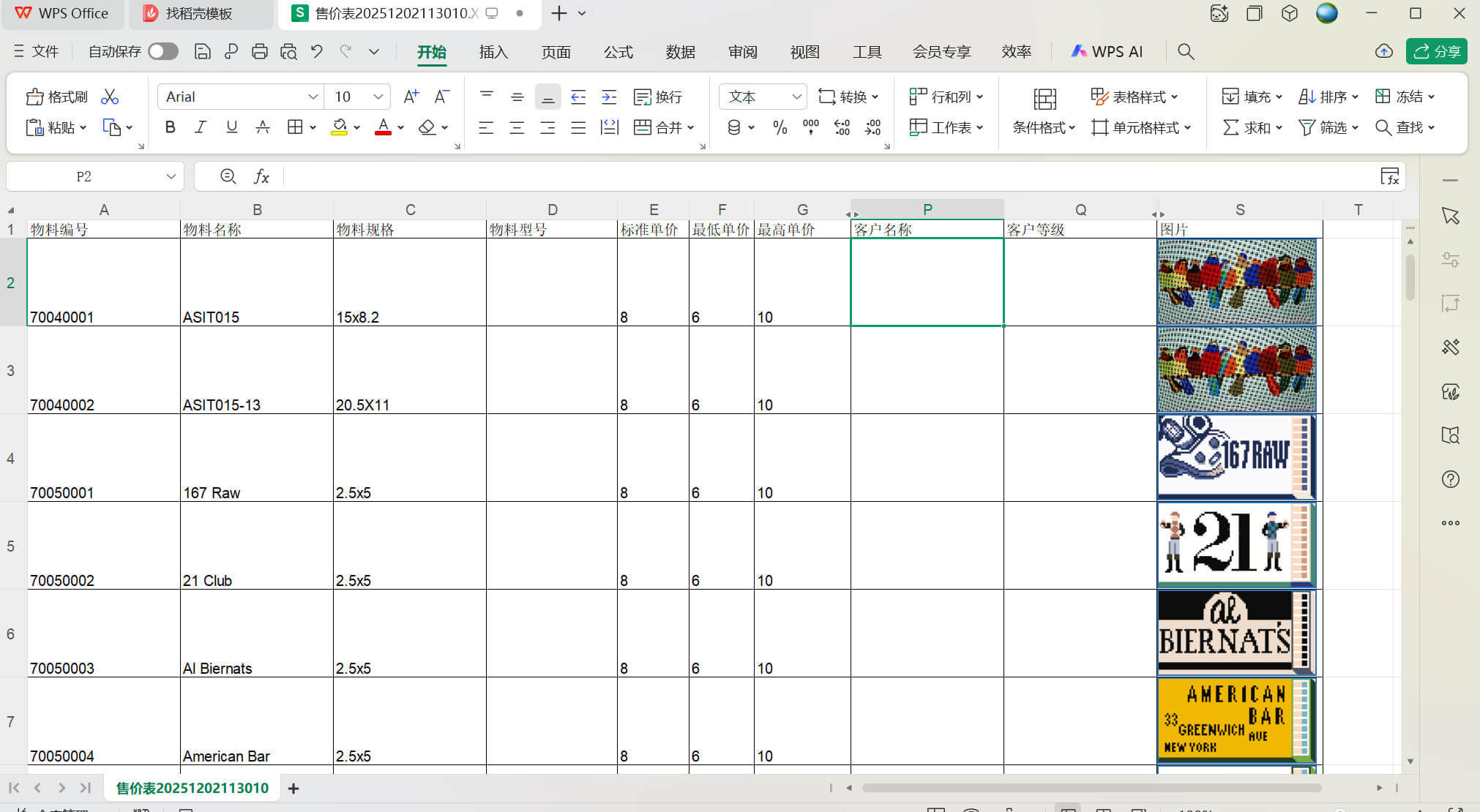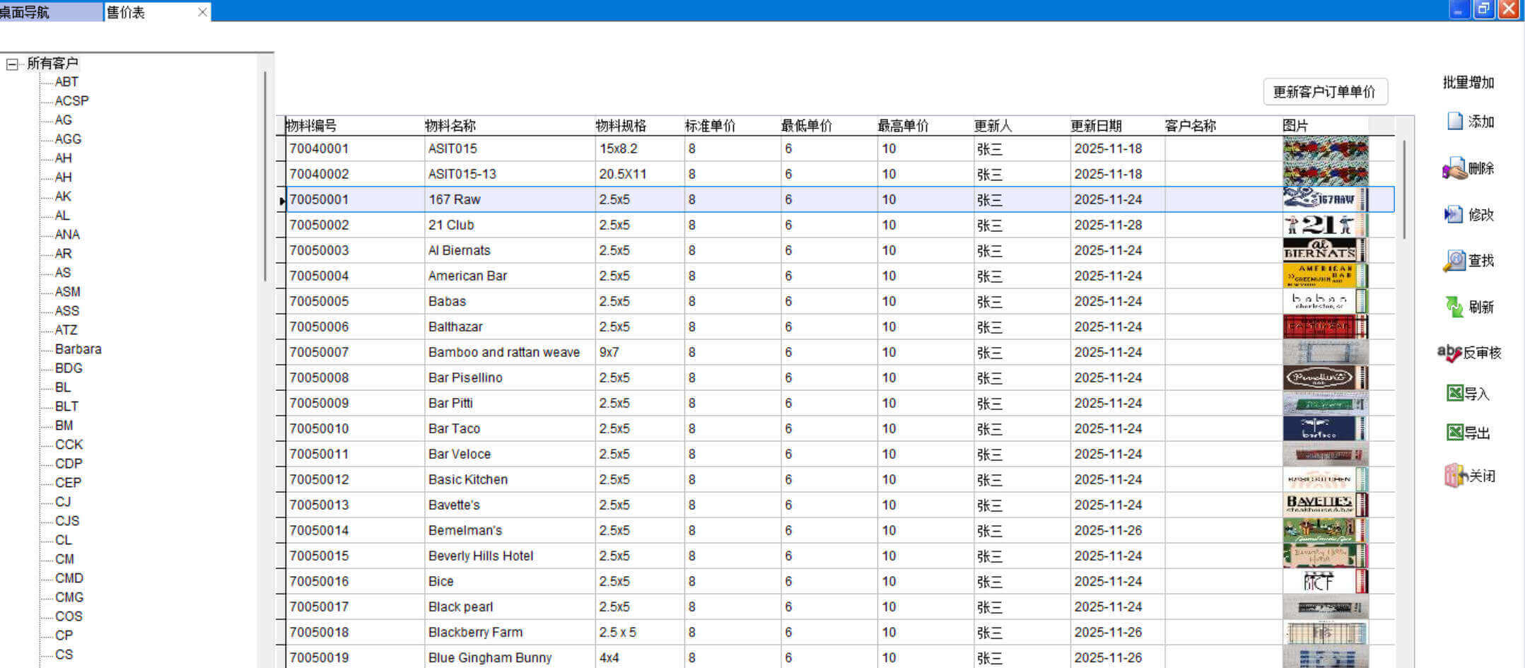 做售价表时指定客户名称