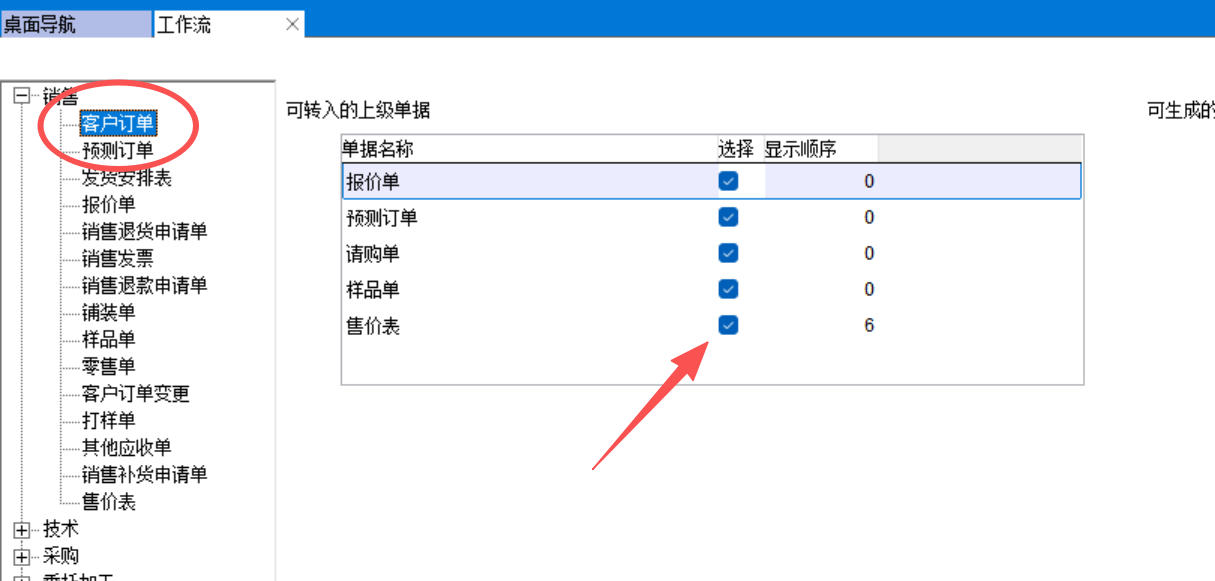 配置文件中,勾选客户订单单价自动获取自售价表的标准单价,保存后重新登录ERP生效。