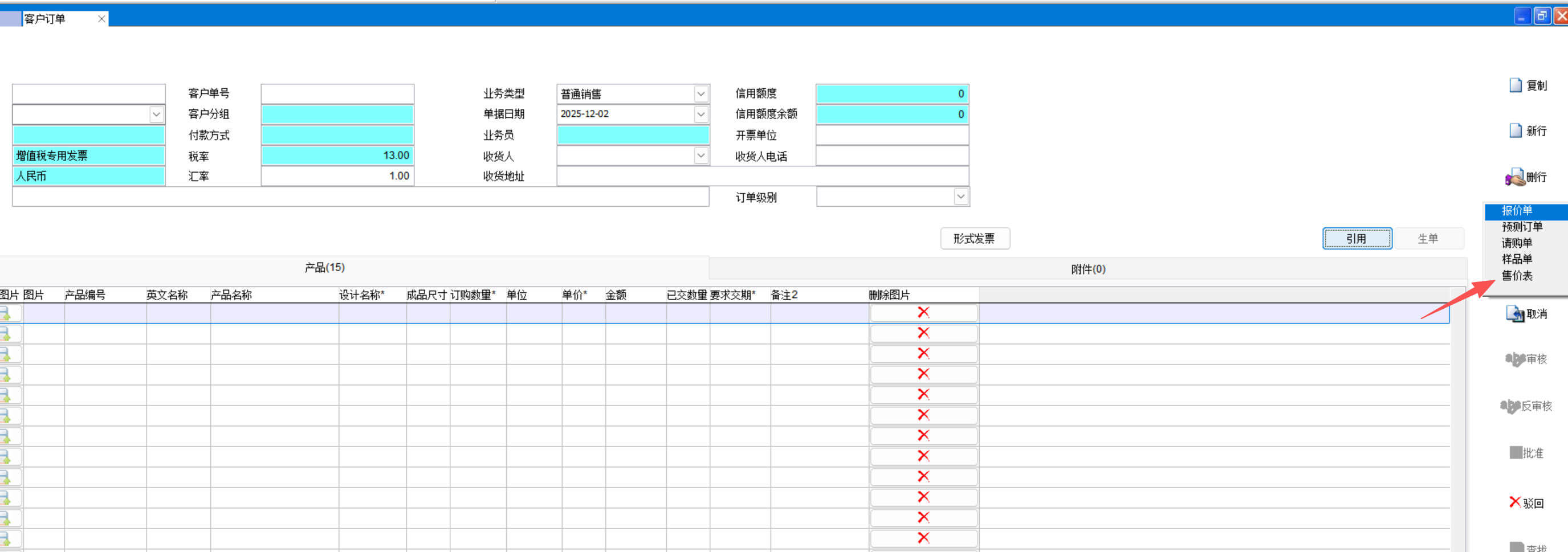 做客户订单看下是否生效,当输入产品后单价自动出现