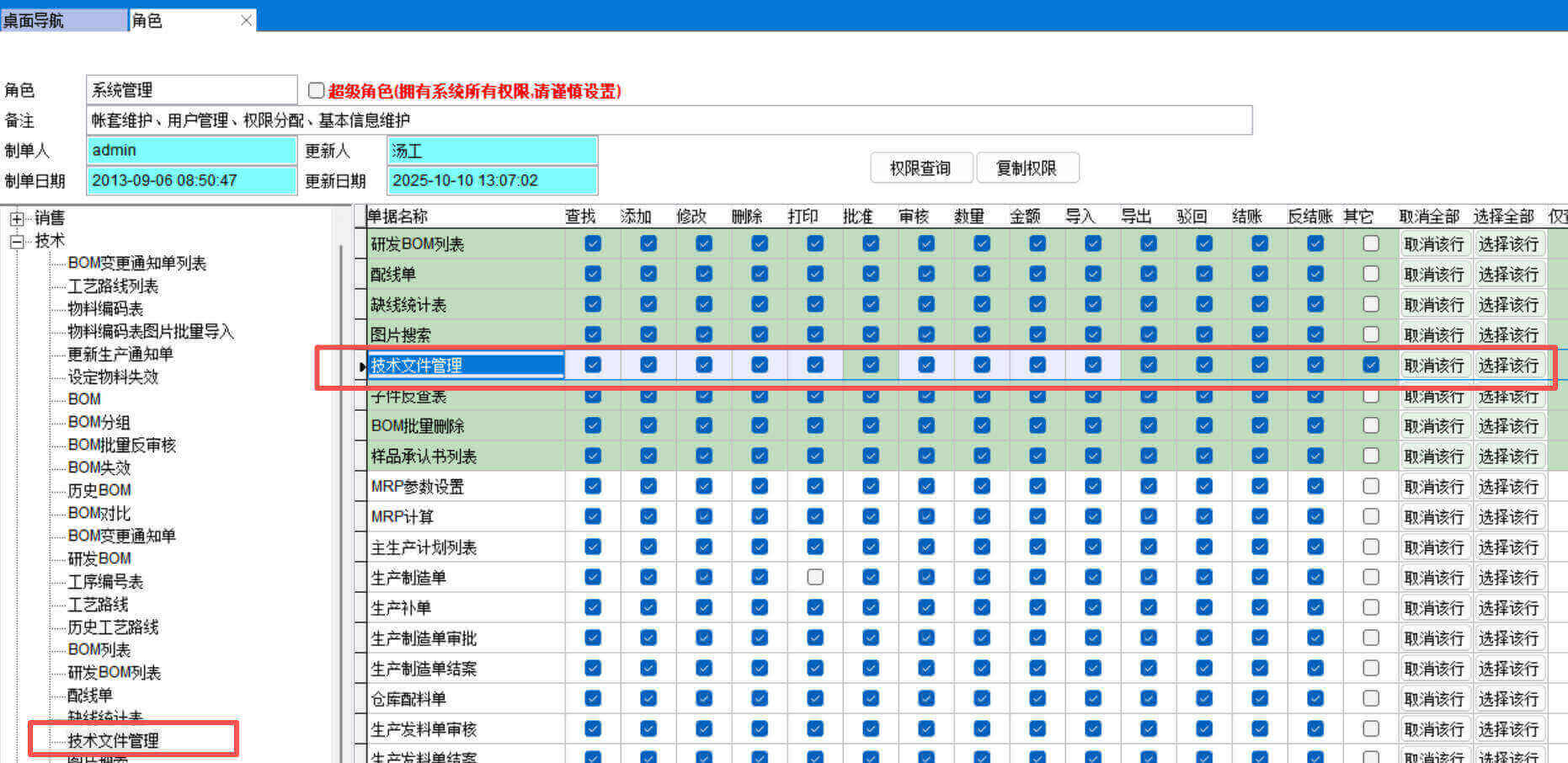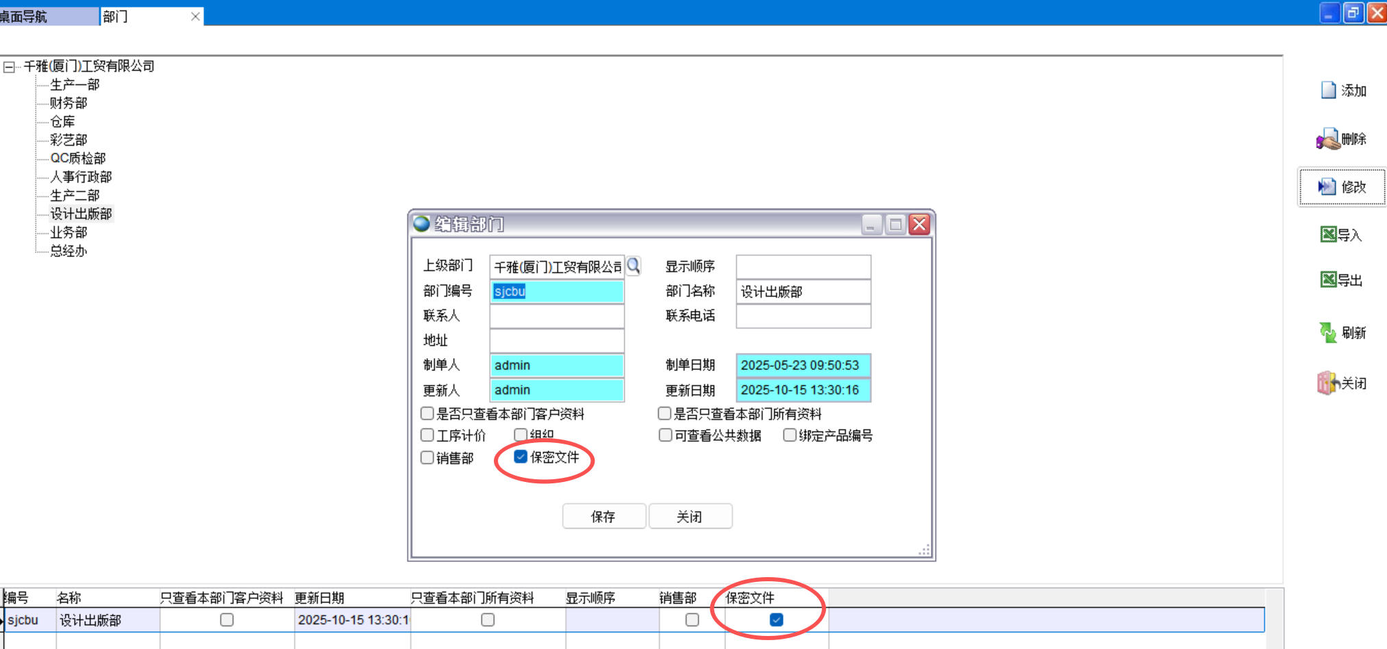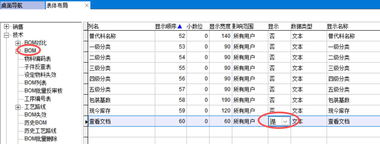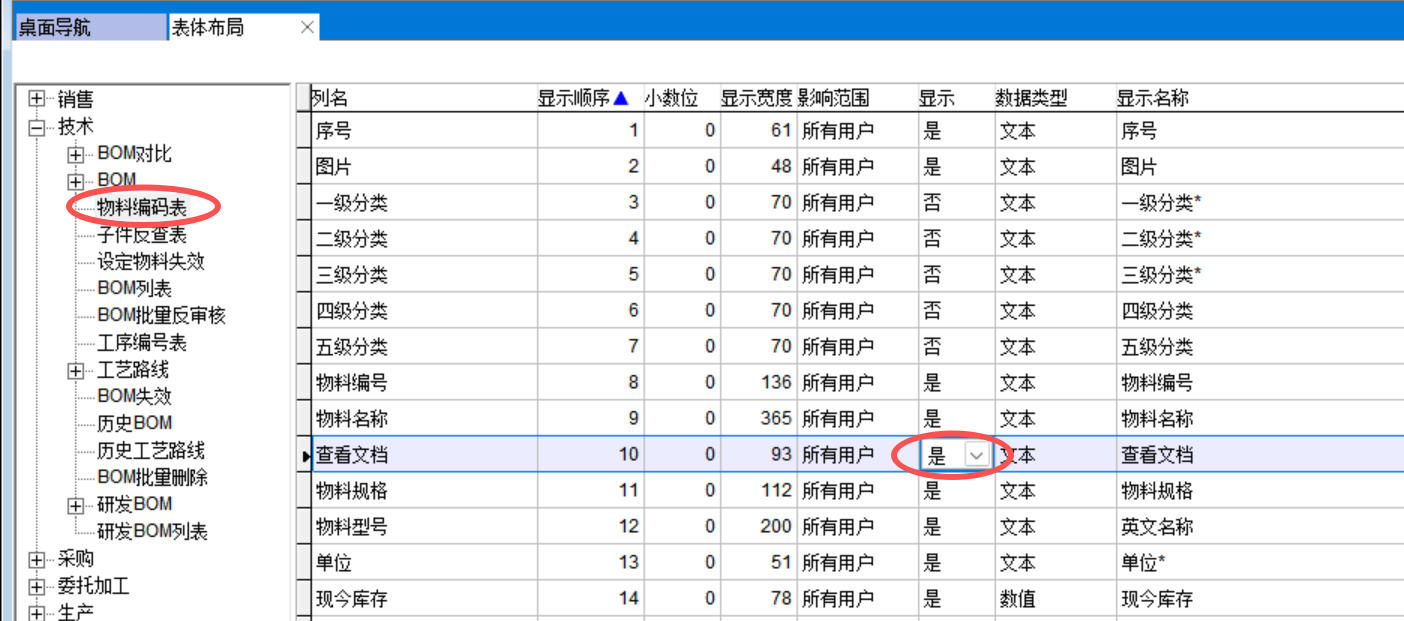 设置后,如果张三属于设计出版部,在物料编码表和BOM中查看文档就能看到所有技术文件,否则只能看到保密文件以外的技术文件。