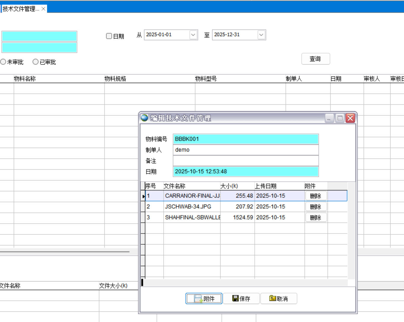 2、技术资料室需要文件名称,可以和物料编号无关,技术文件管理是和物料编号绑定