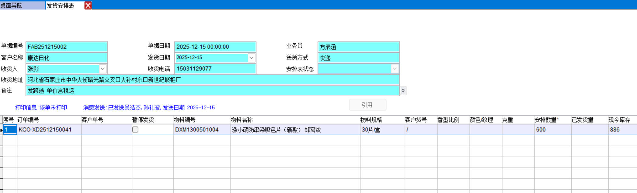 排单号就是发货安排表的单据编号,双击可以打开发货安排表