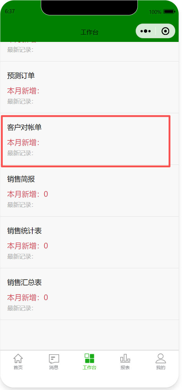 打开路径:【首页】-【工作台】-【销售】-【客户对帐单】
