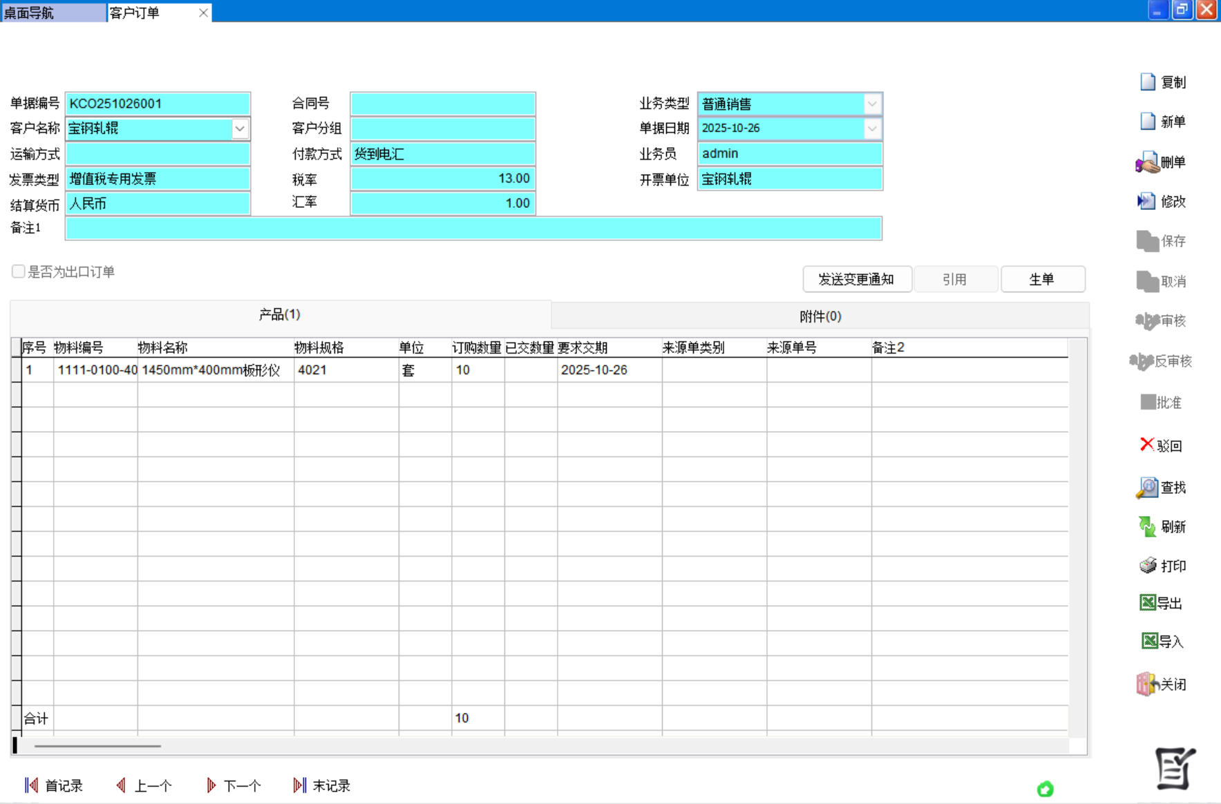 以客户订单为例,审核、批准权限如下图,有审核、批准权限的都是业务类的单据如客户订单、采购单、请购单等,报表没有审核、批准。