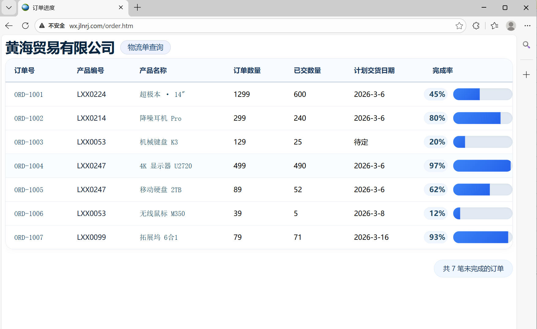 3、订单进度